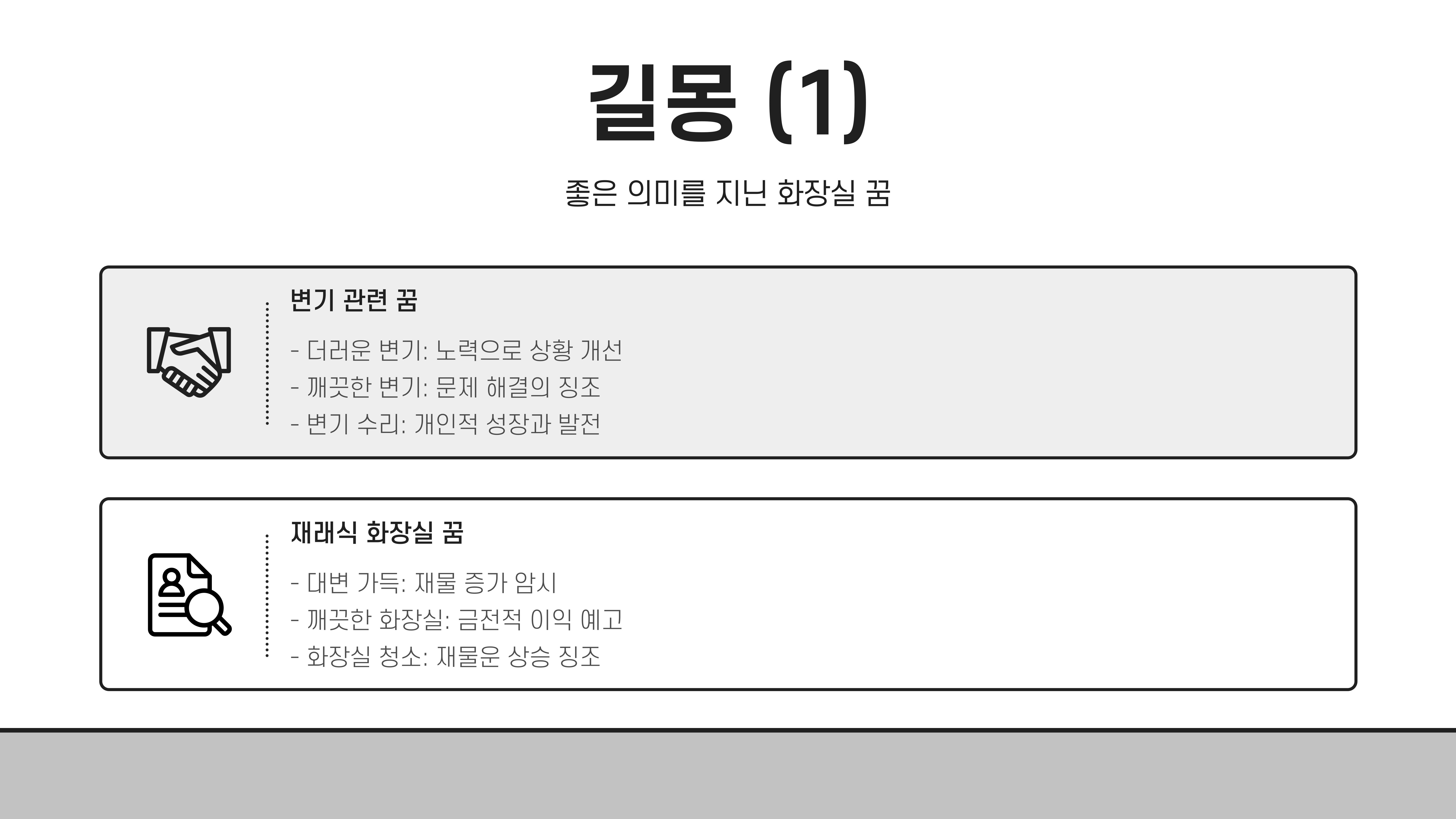 이번 포스팅에서는 화장실과 관련된 꿈을 상황별로 정리하여 길몽과 흉몽을 나누어 설명하겠습니다.